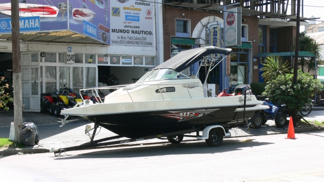 Cabina como para tres a cuatro personas cómodas con almohadones desmontables y alfombrada en su totalidad, dos ventanas laterales fijas, un tambucho con mosquitero y gancho neumático, baño químicos portátil, mesa desmontable, posavasos, tambuches, dos butacas giratorias rebatibles, asientos traseros tapizados, guardamancebo; estructura de acero inox para el techo, proa cerrada con asiento practico para acceder al ancla, bombas de achiques, caja para batería, tanque de combustible 80 litros con tapa imperdible, tablero símil madera con espacio para 4 relojes (Cta. vuelta , combustible, voltímetro, Cta. millas), encendedor con luz, toma 12V, un panel de control con 2 teclas con luz, 4 guantera laterales, cancamos de acero inox tapa de, luces de navegación , caja de dirección con volante blanco cosido en cuerita y centro símil madera